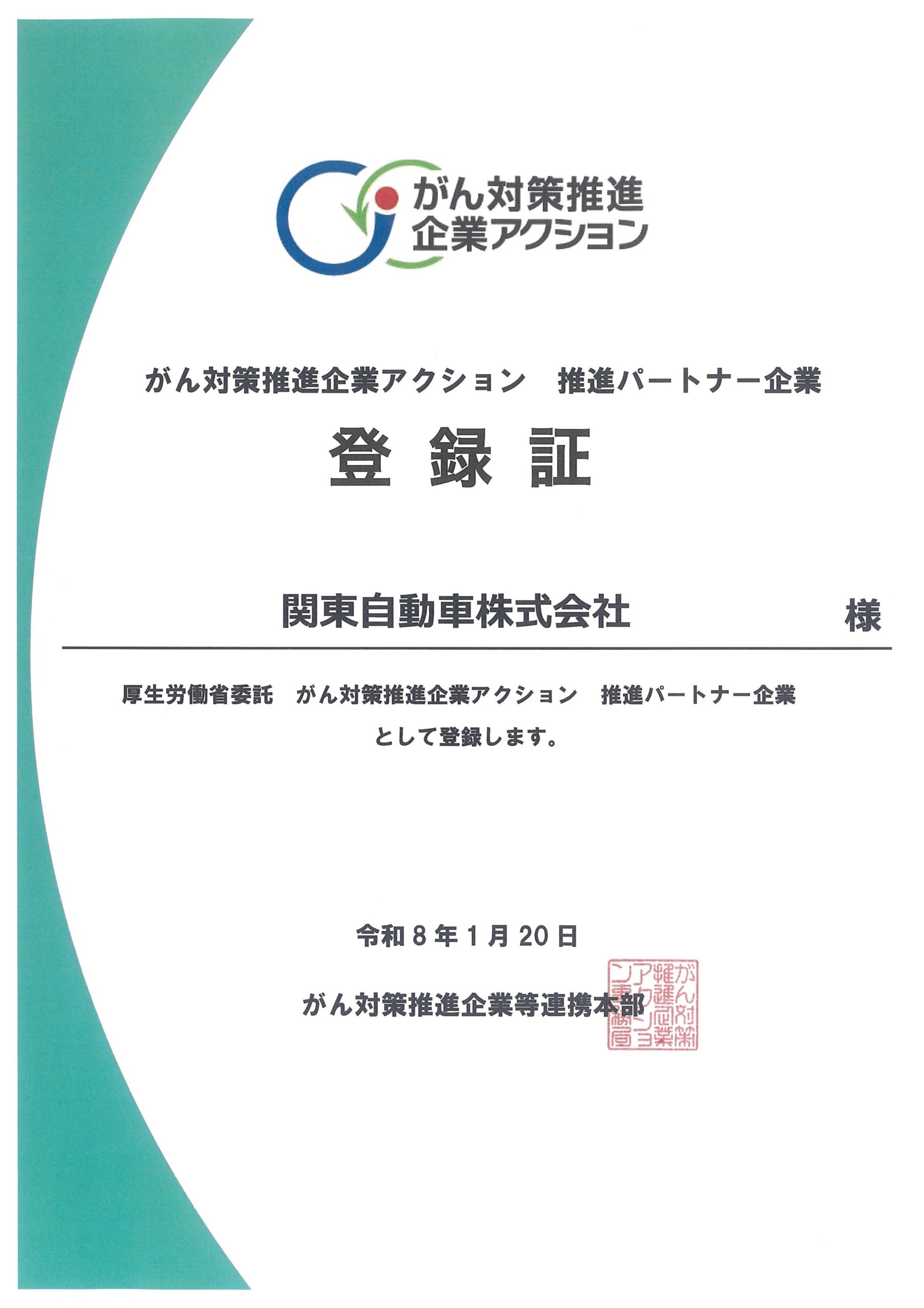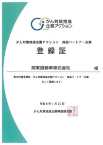 このたび弊社では厚生労働省委託事業である「がん対策推進企業アクション」推進パートナー企業として登録されました。