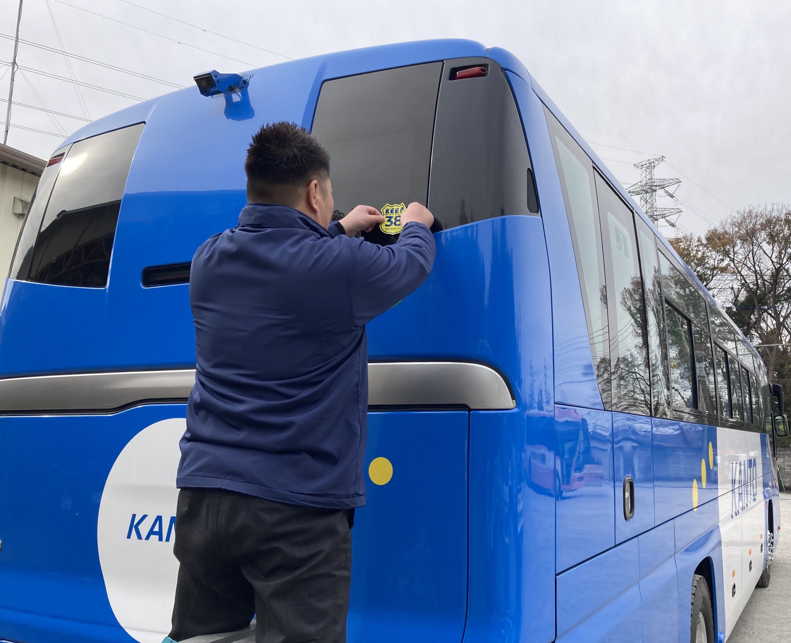 また、弊社オリジナルの「KEEP38ステッカー」を作成し、弊社バス車両に貼付をおこなうことで社員の横断歩行者遵守並びに安全運転への意識向上へ努めてまいります。